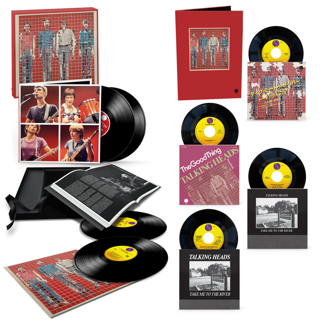 The 4LP Super Deluxe Edition features the remastered album alongside 11 rarities, including four previously unreleased alternate versions of album tracks. The set also includes a live recording of the band’s August 1978 show at New York’s Entermedia Theatre. A 60-page hardcover book rounds out the package, with previously unseen photos and new liner notes with recollections from Tina Weymouth, David Byrne, Chris Frantz, and Harrison. This exclusive version is only available at Rhino.com and TalkingHeadsOfficial.com and includes reissues of four international 7” singles: U.S., U.K., and Japanese versions of “Take Me To The River,” plus “The Good Thing,” from the Netherlands. Each comes in a reproduction picture sleeve, all packaged alongside the 4LP set in a custom die-cut folio.